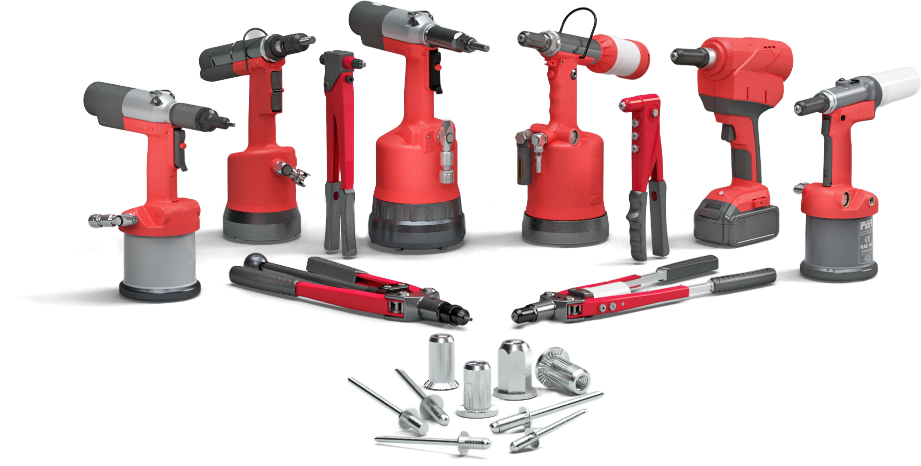 Un ampio catalogo con oltre 50 modelli (manuali, pneumatici, oleopneumatici e a batteria) per applicazioni professionali; utilizzabili sia in modalità portatile sia su linee di assemblaggio. I servizi di riparazione degli utensili e la fornitura di ricambi originali sono garantiti a livello mondiale. Sistemi automatici e semiautomatici personalizzati: per integratori di sistema e utilizzatori finali che richiedono sistemi di rivettatura ad alte prestazioni e ad alto volume, tutti certificati ISO 9001:2008.